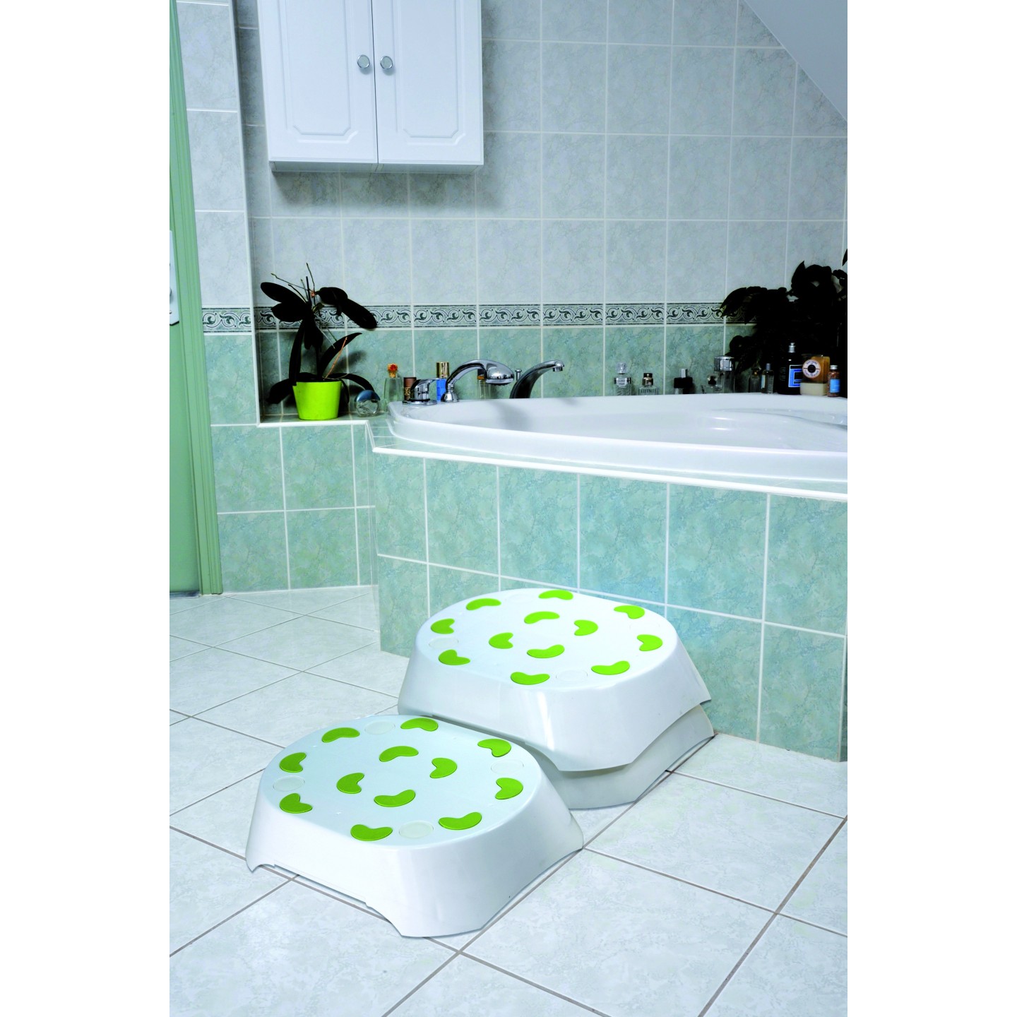 La marche d'accès au bain vous permet d'enjamber plus facilement le rebord de votre baignoire grâce à sa hauteur de 12 cm.