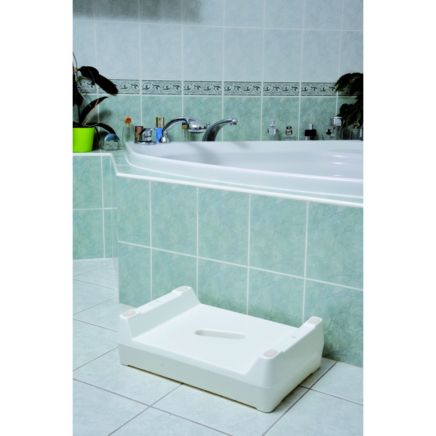 Cette marche d'accès au bain vous permet d'enjamber plus facilement le rebord de votre baignoire.