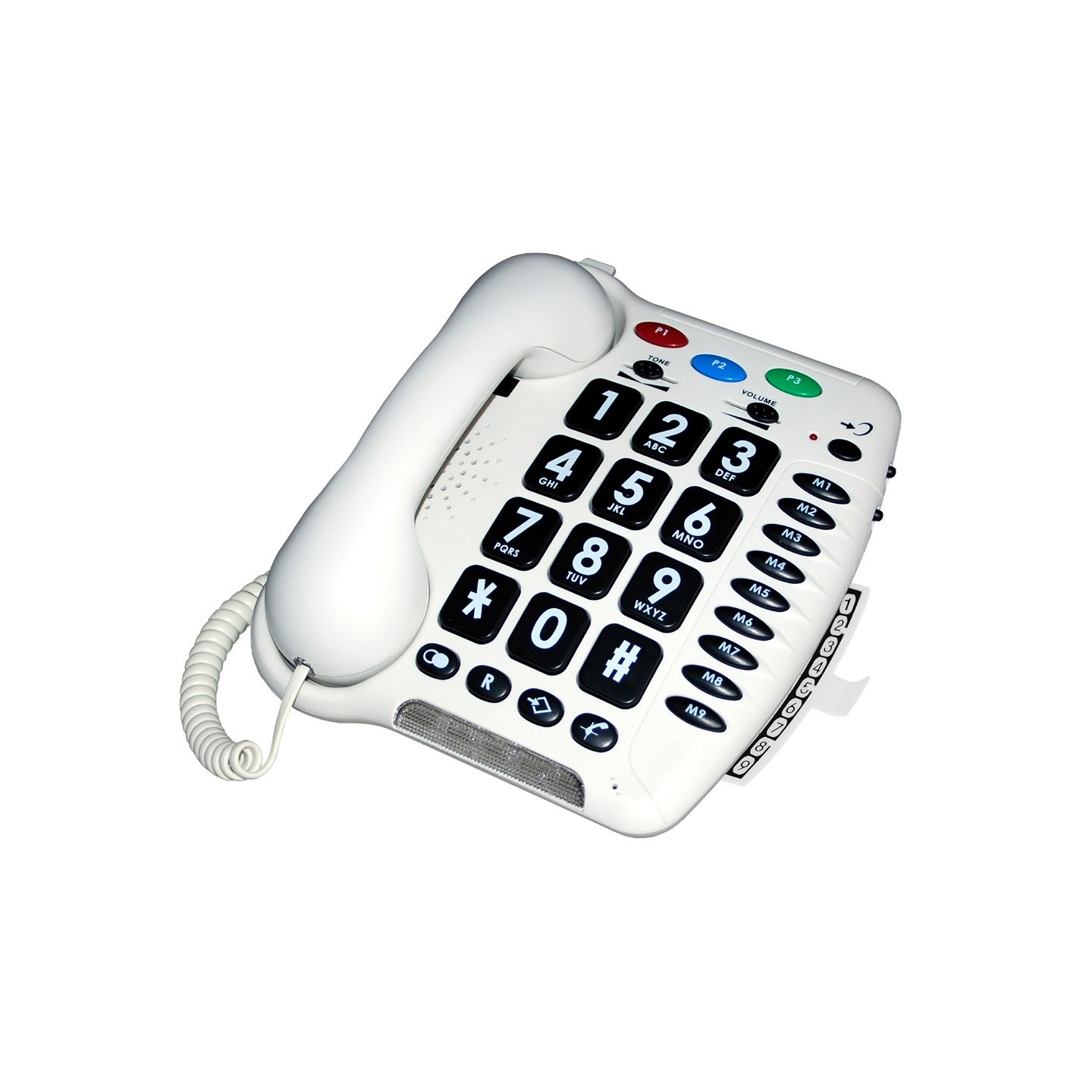 Ce téléphone grosses touches possède 3 mémoires d'urgence et 9 mémoires directe.