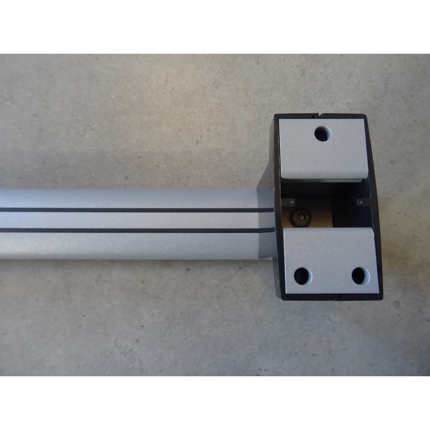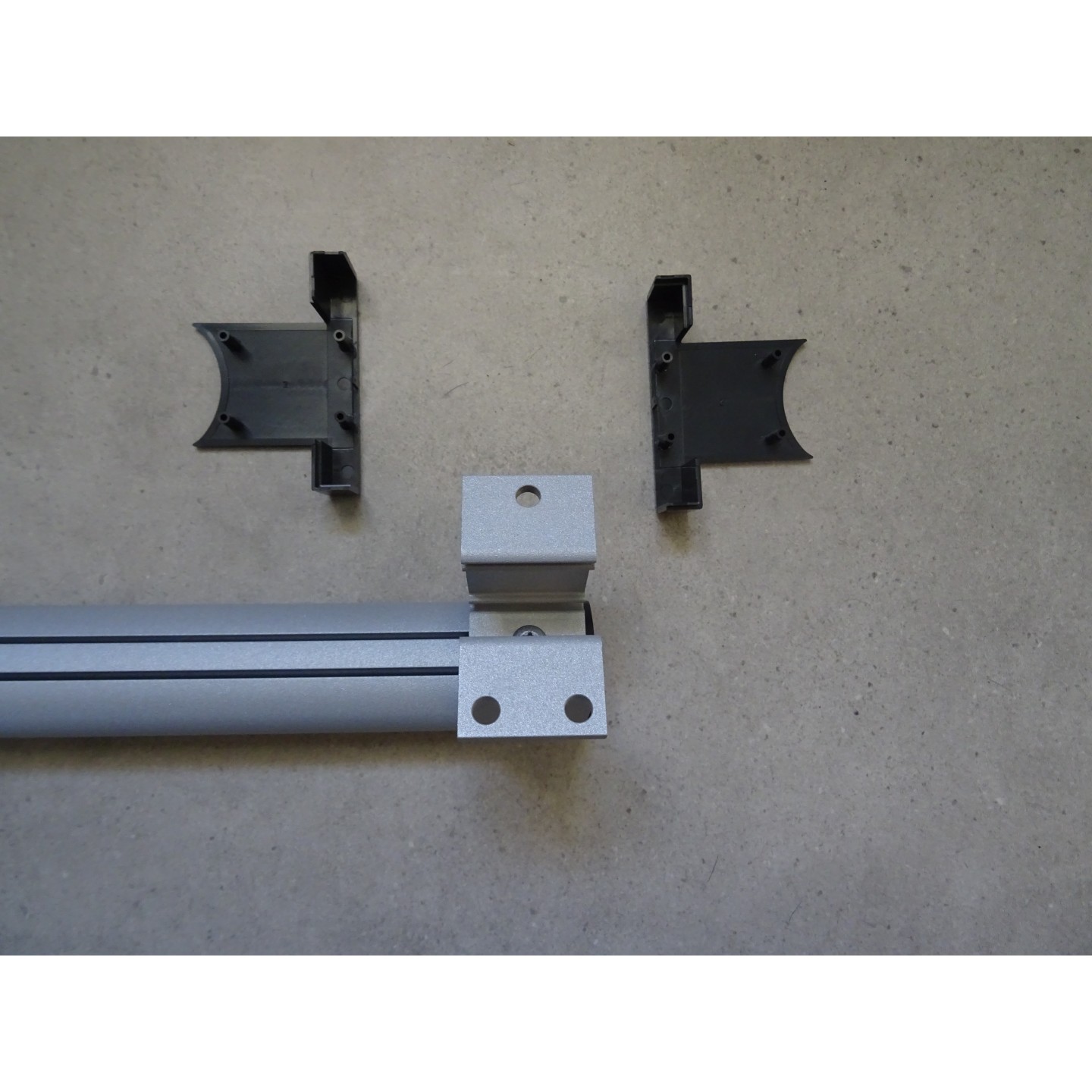 Tube elliptique 38 x 25 mm, en aluminium époxy gris mat, longueur 400 mm. Cache-fixations