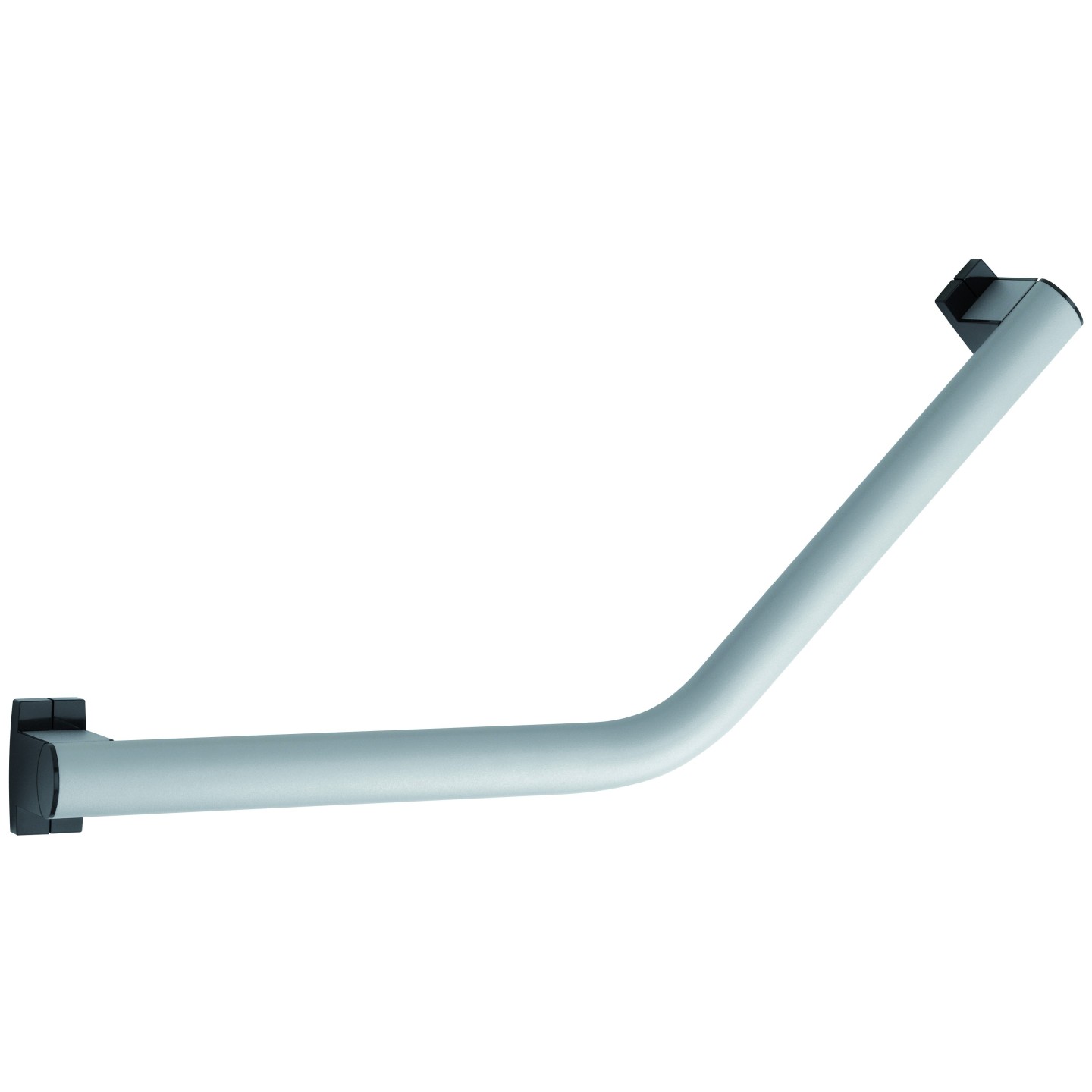 Tube elliptique 38 x 25 mm, coudé 135°, en aluminium époxy gris mat. Cache-fixations en