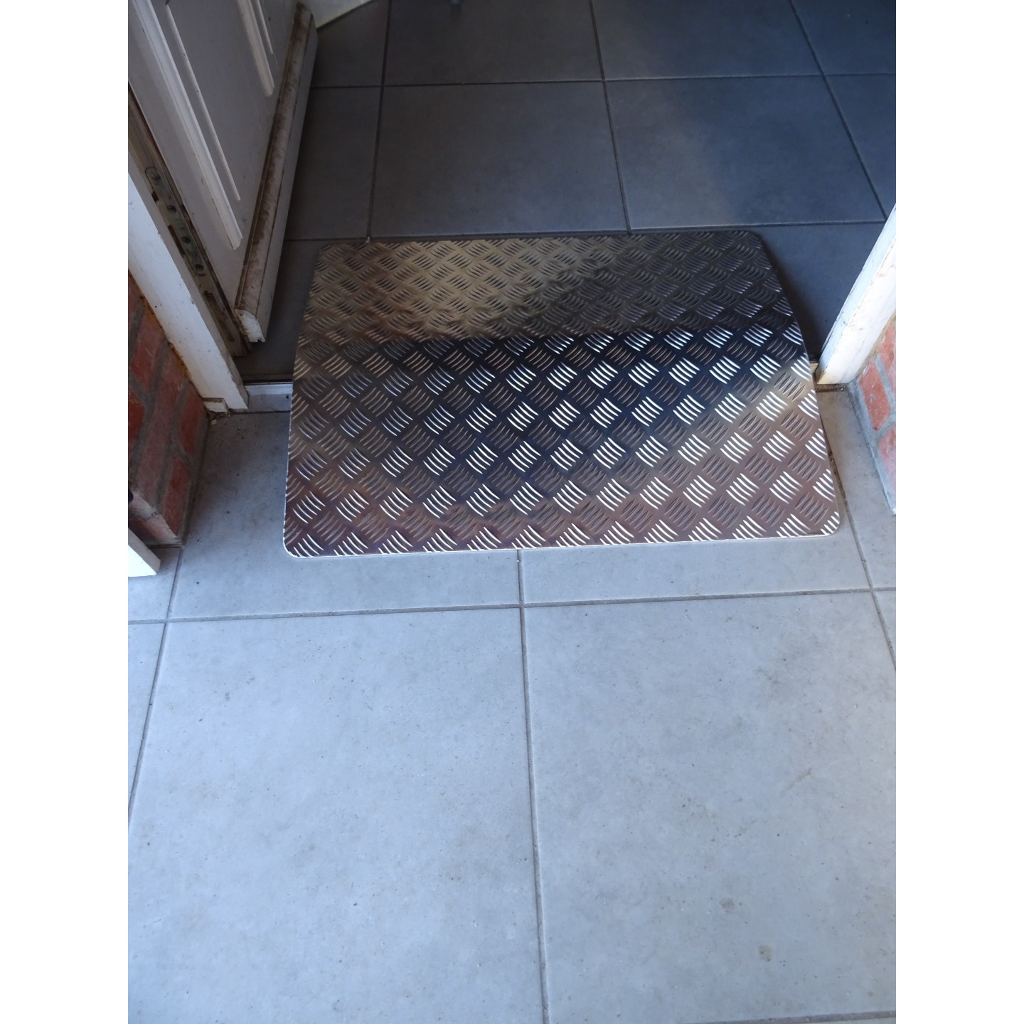 Cette rampe passe seuil en tôle à damier aluminium est conçue pour passer aisément les seuils et les marches.