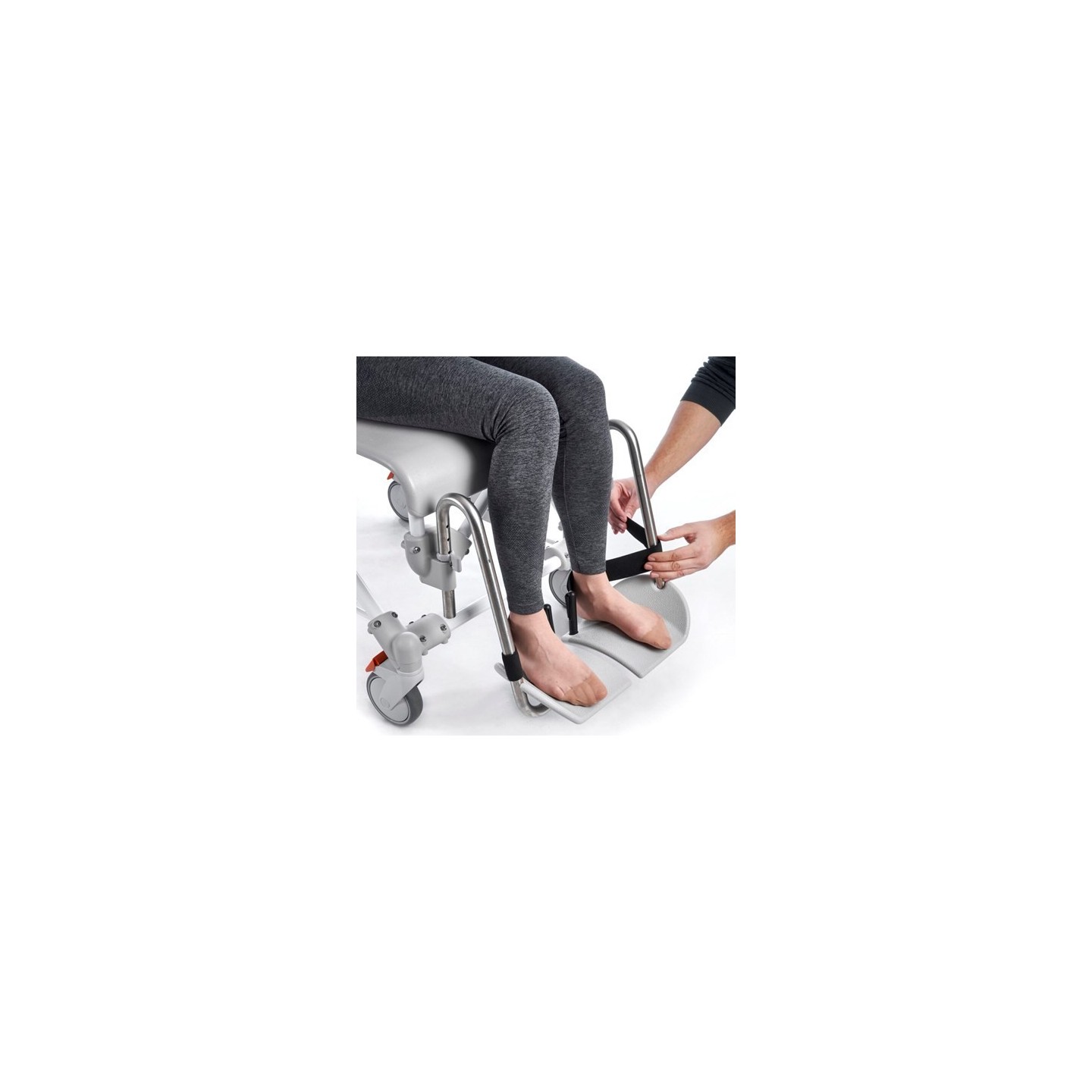 Les cales talonnières pour la chaise de douche Swift Mobile 2 évitent au pied de glisser en arrière.