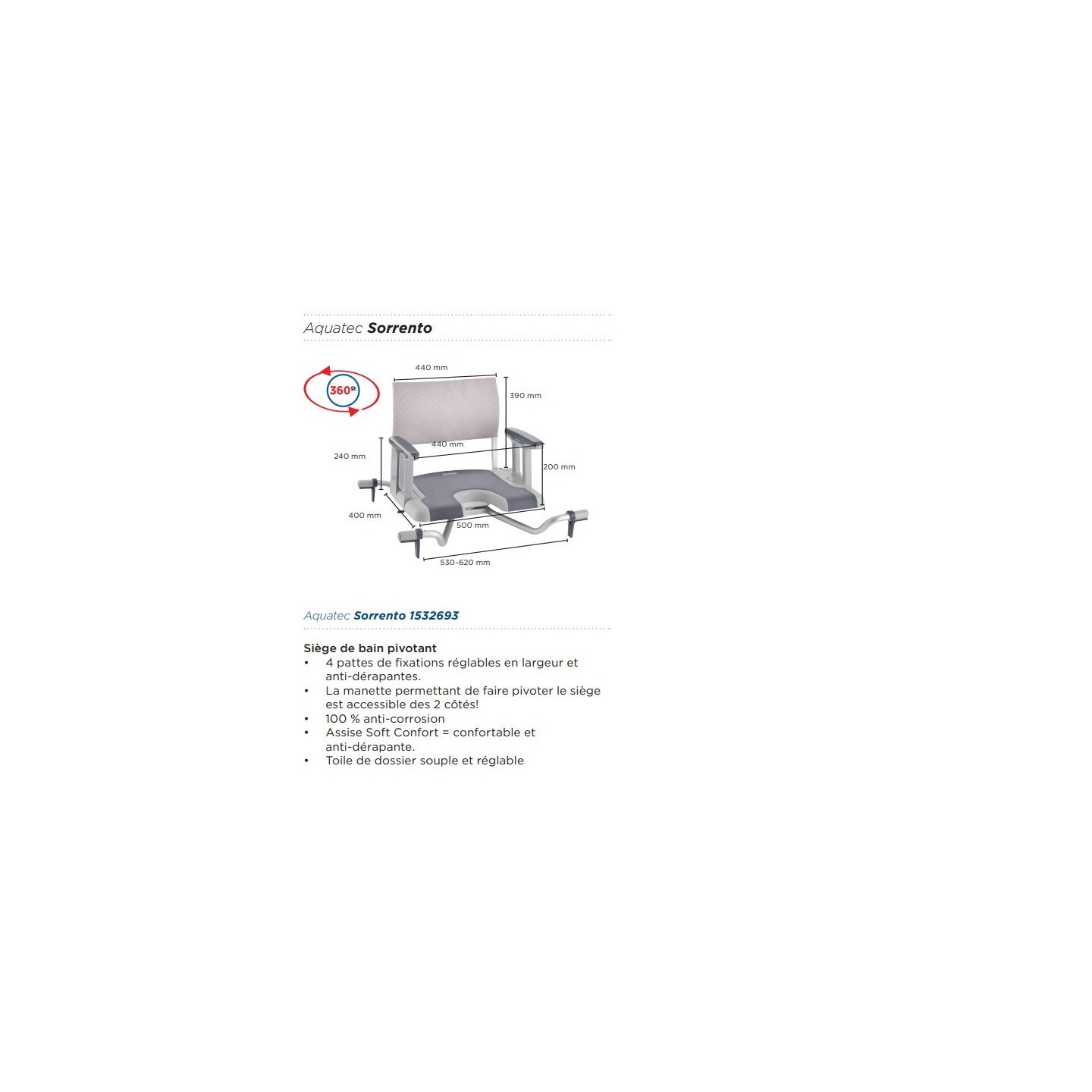 Siège de bain pivotant Aquatec Sorrento
