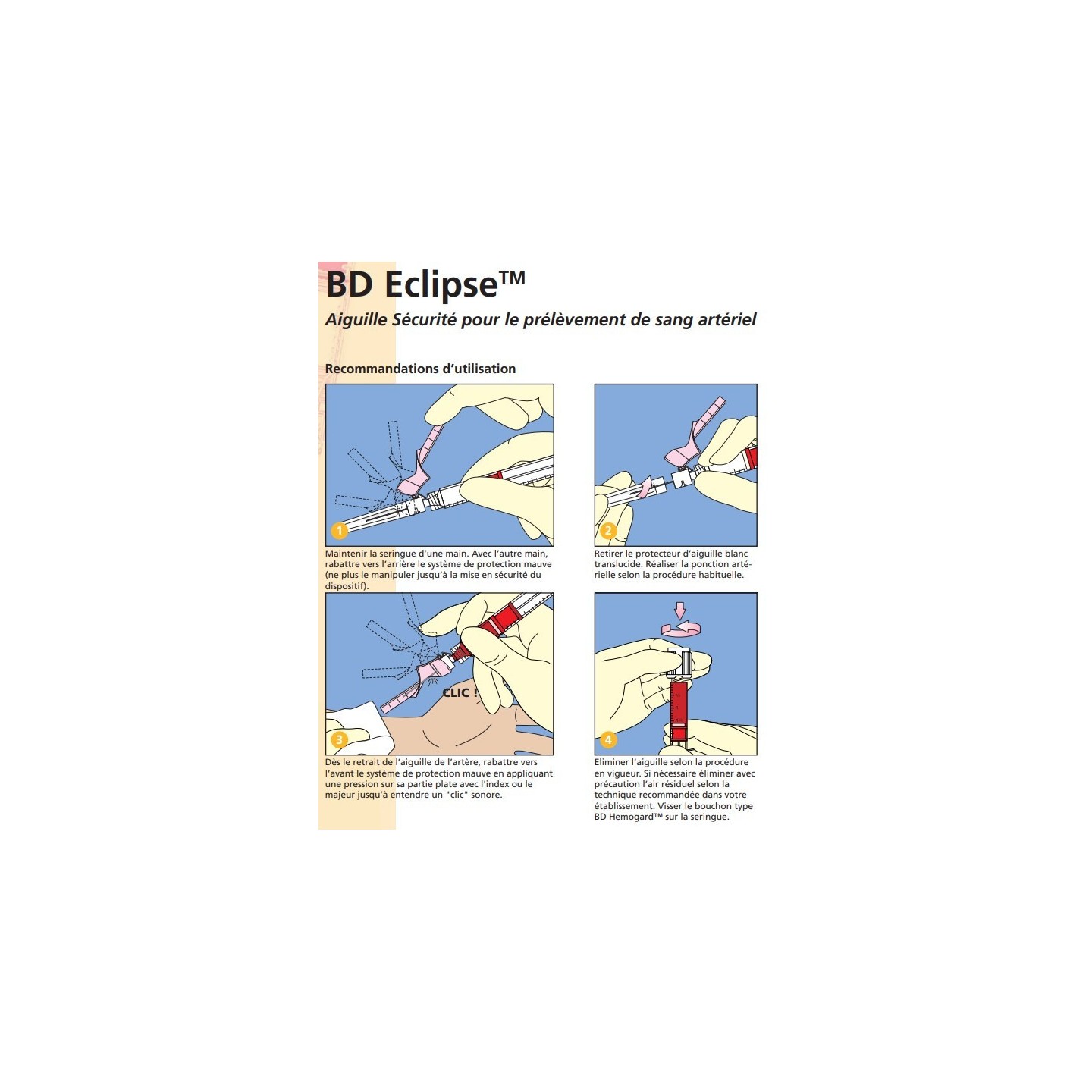 Utilisation : prélèvement de sang artériel.