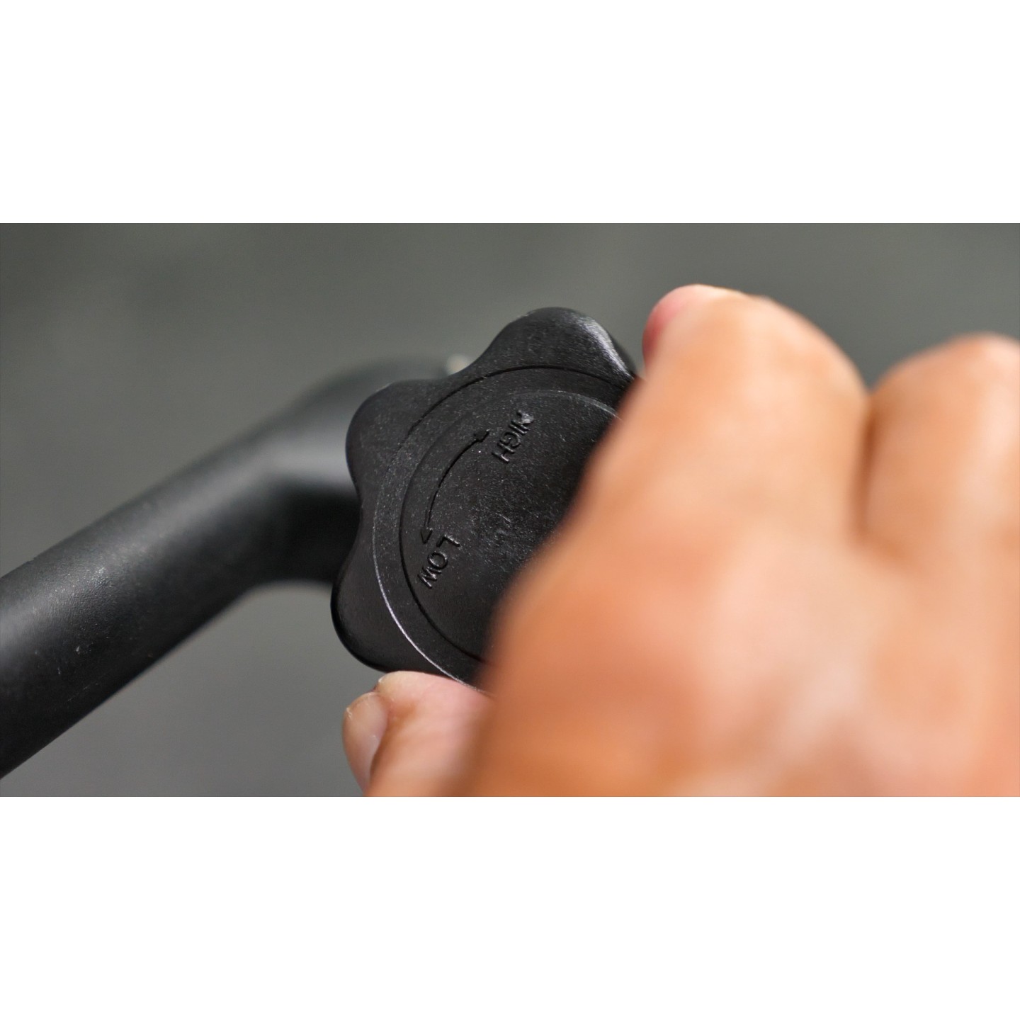Une molette de réglage gère l’intensité de la résistance au pédalage.