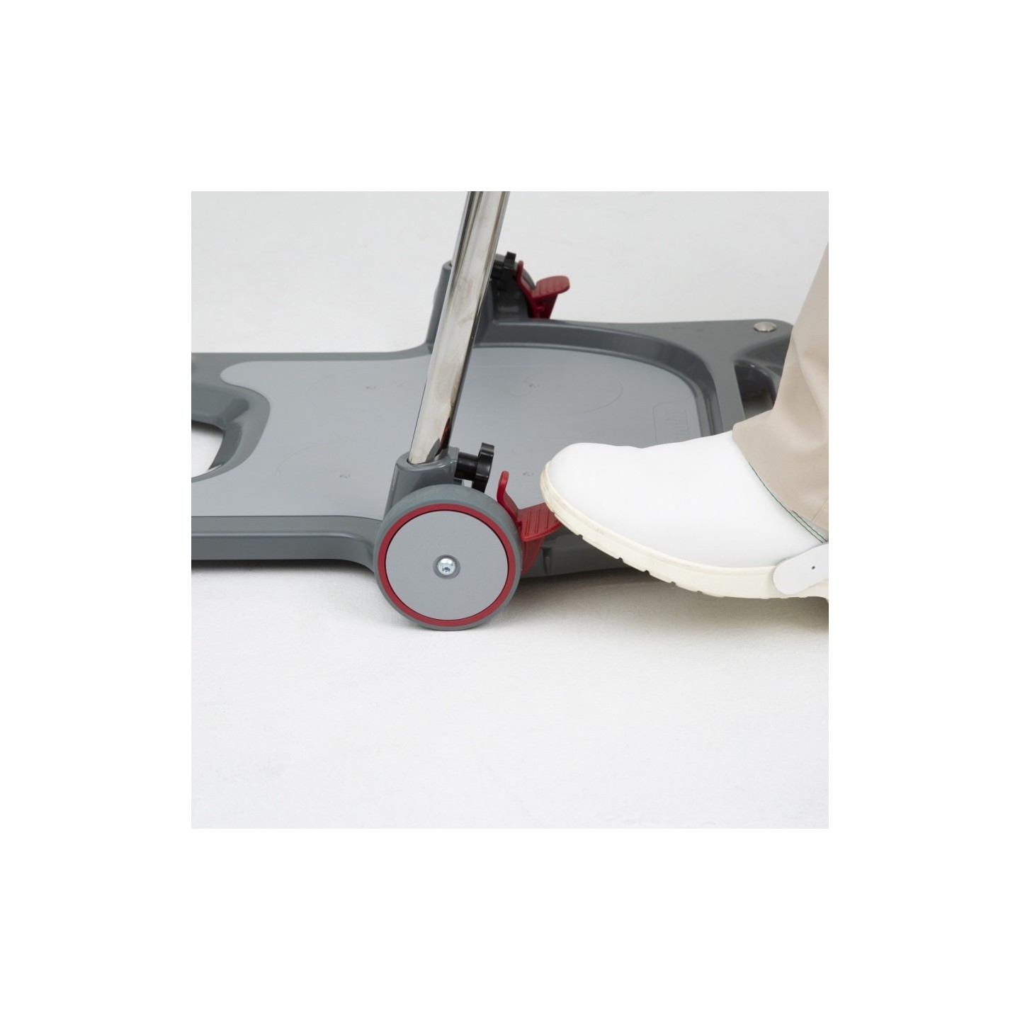 La hauteur du repose-jambe est facilement réglée depuis la gauche ou la droite de l’appareil. La paume de la main repose sur le rebord externe alors que les doigts déverrouillent le loquet sans effort.