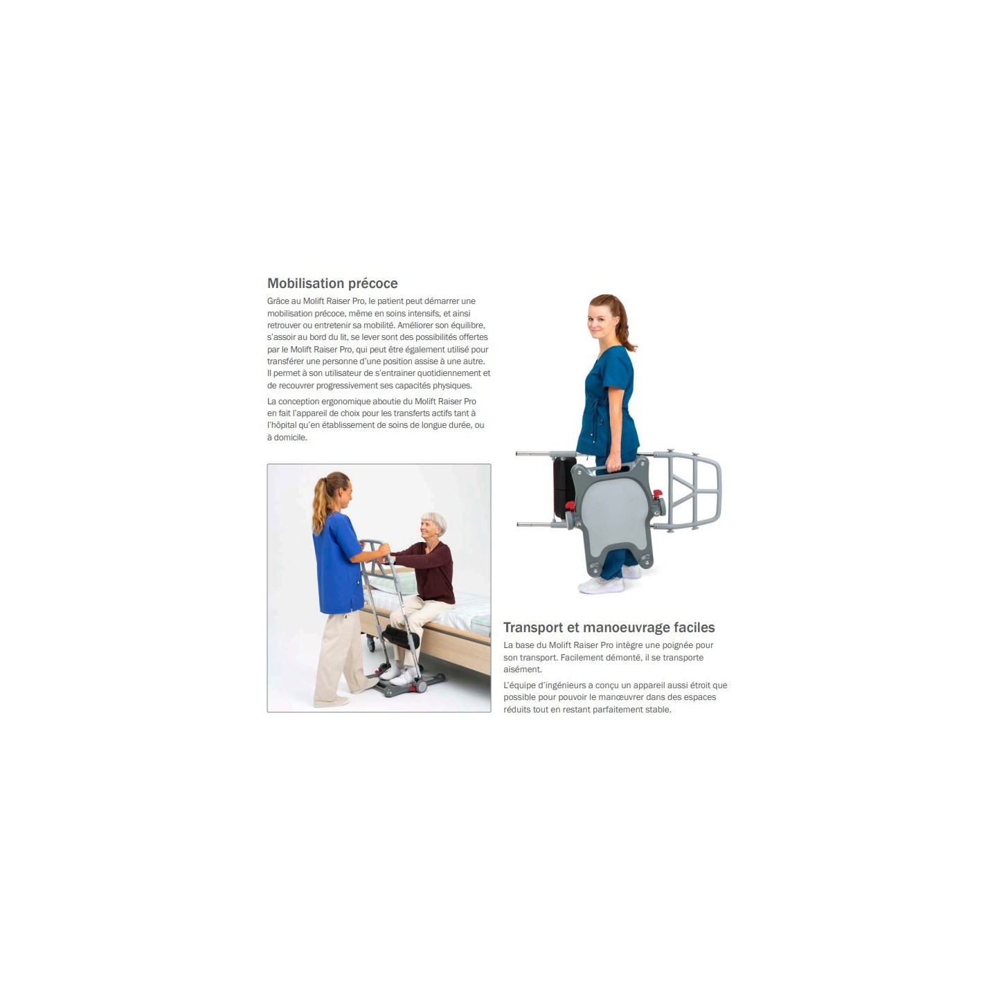 Molift Raiser Pro est pensé pour que les transferts actifs soient sécurisés, simples et pratiques.