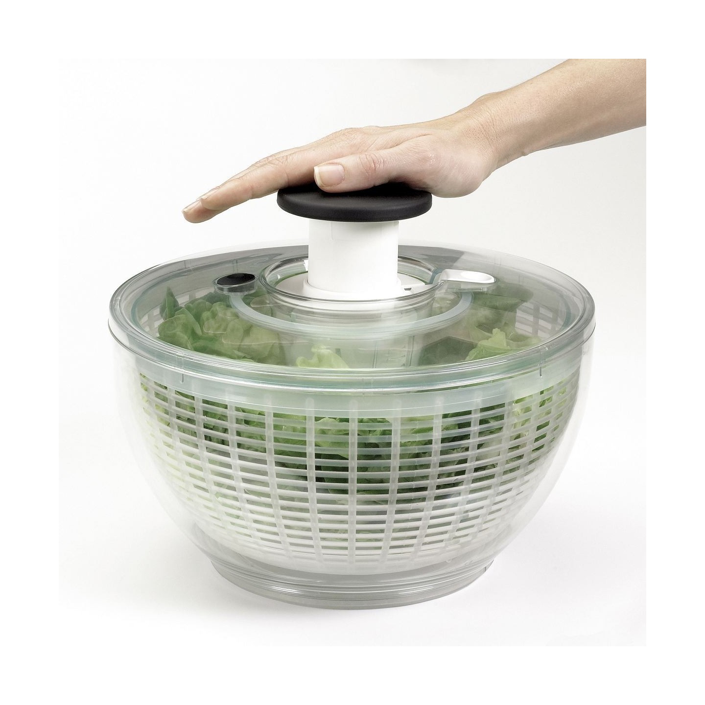 Grâce à une simple pression de la paume de la main, votre salade est essorée sans effort.