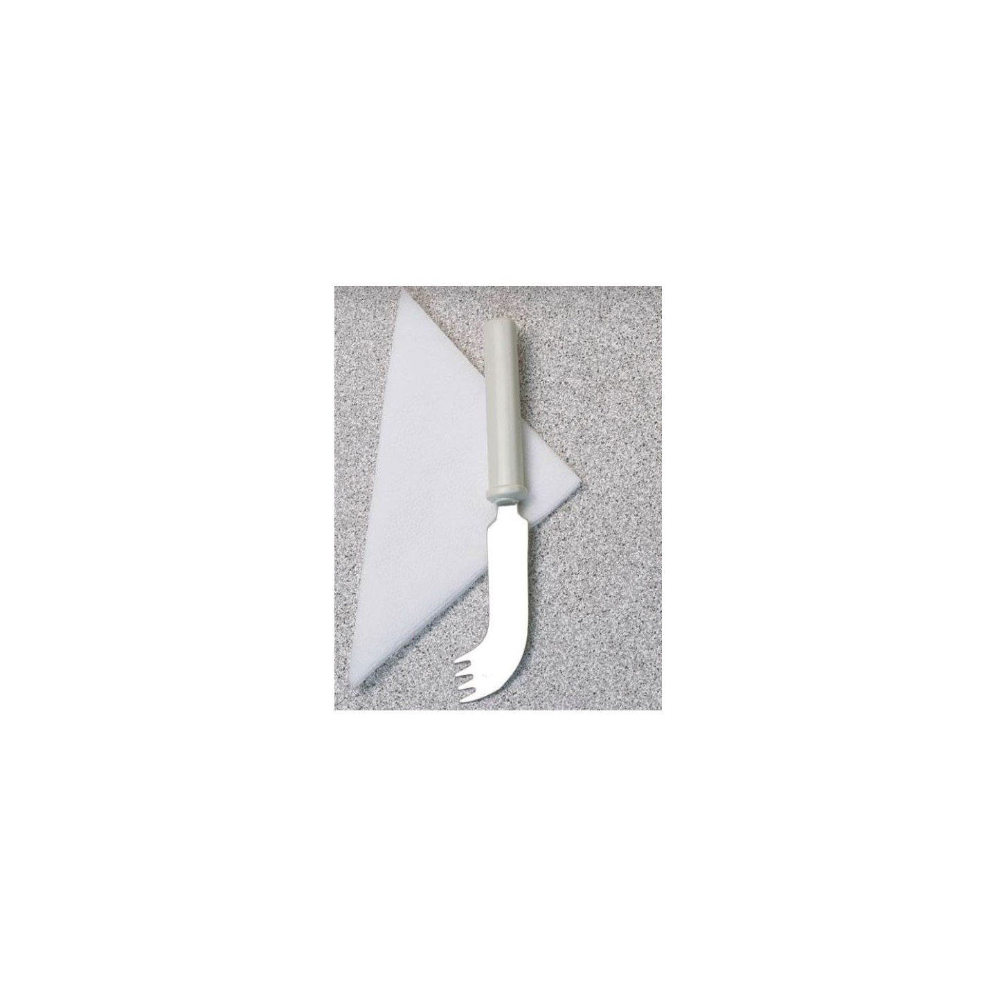 Le couteau Nelson a un bord tranchant avec une extrémité arrondie, terminée par des dents de fourchette.