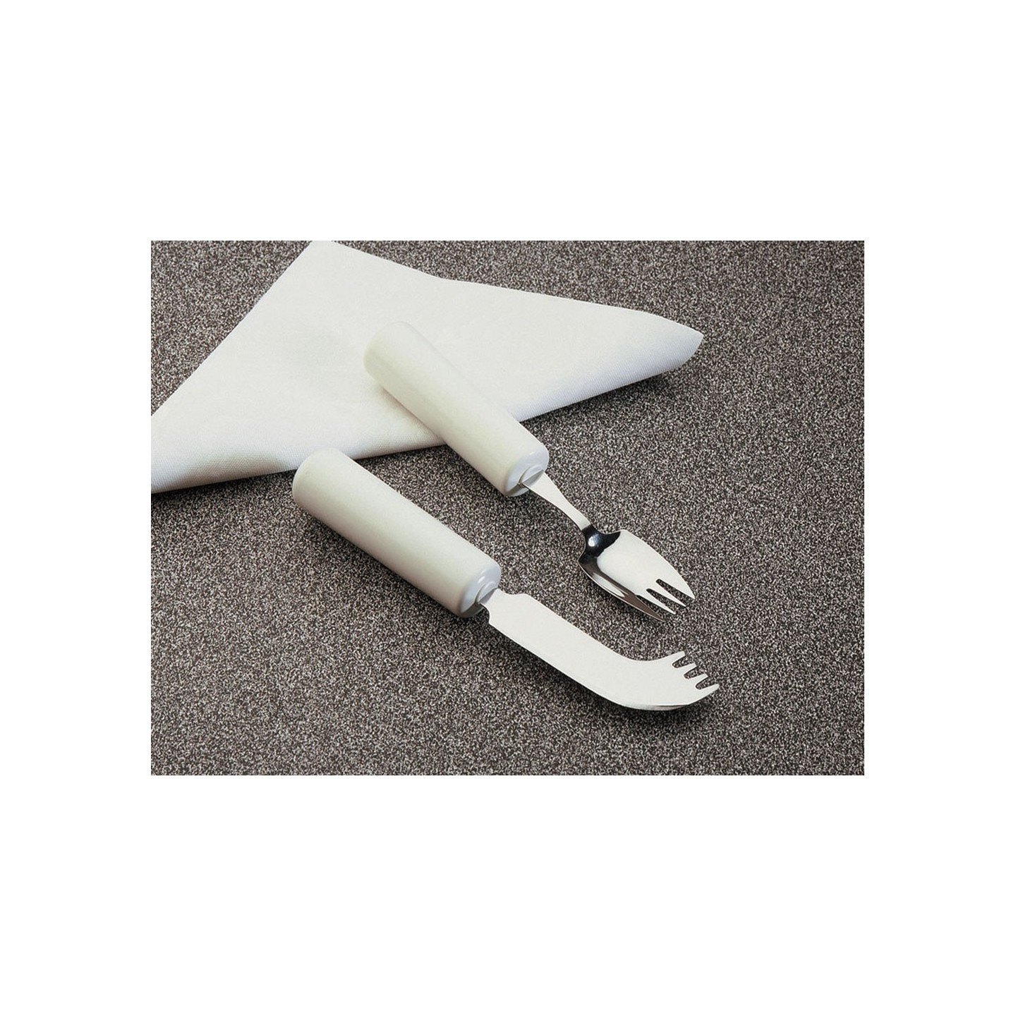 Il permet de couper les aliments et de les piquer d'une seule main.