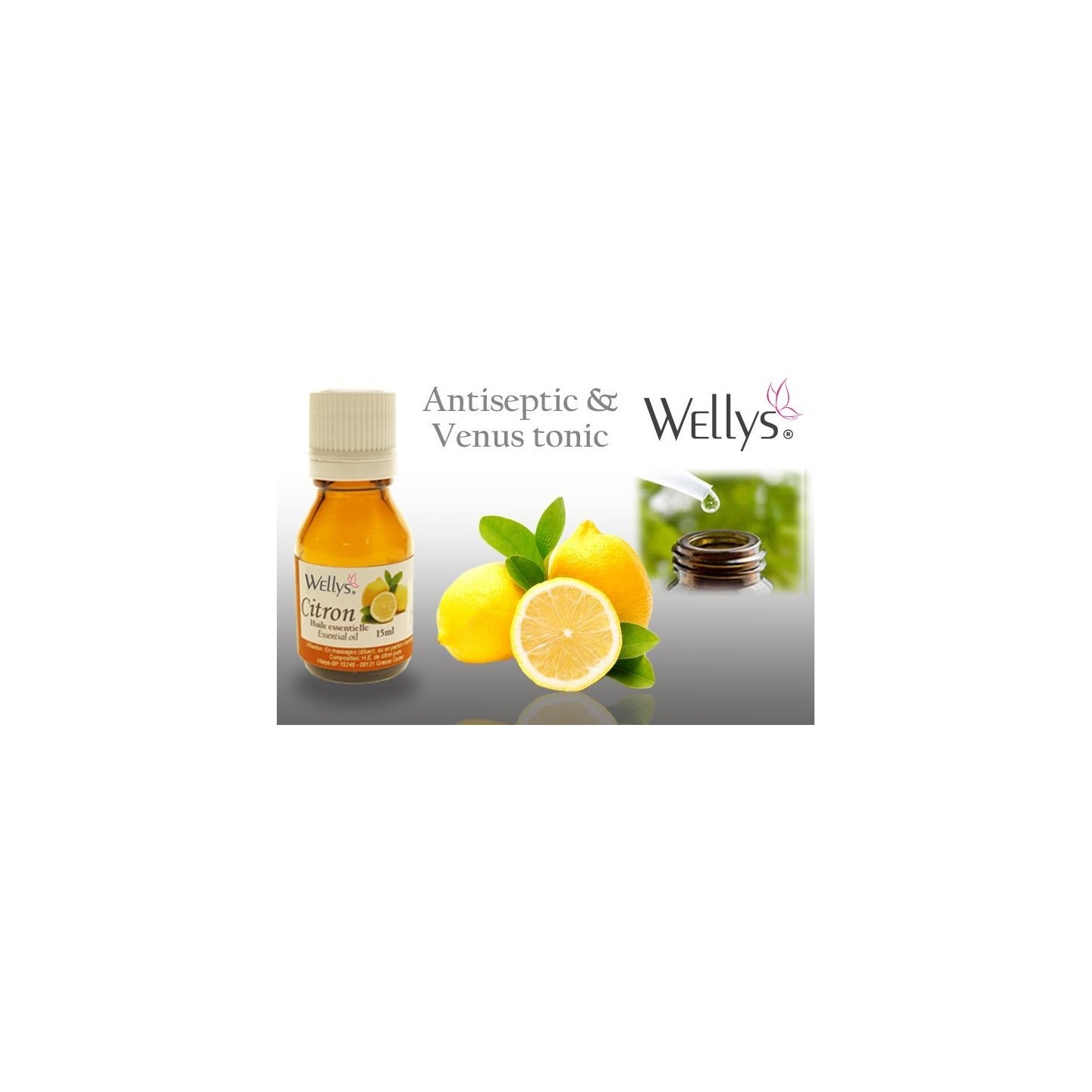 Cette huile essentielle est présentée en flacon de 15 ml. L’huile essentielle de citron est principalement utilisée pour renforcer la tonicité des vaisseaux sanguins et trouve son utilisation en massages pour les problèmes de jambes lourdes et pour lutter contre la cellulite. Elle est antiseptique, notamment utilisée par les voies olfactives et participe à l’assainissement des locaux (maison, bureau,…). Flacon en verre brun, compte gouttes, bouchon vissé. Contenance : 15 ml. Cet article n’est en aucun cas un traitement médical. Il s’agit de produit entrant dans la catégorie des soins et bien être. Se reporter aux indications sur l’emballage pour l’utilisation. Origine du produit : France. Pour la composition, se reporter à la fiche technique