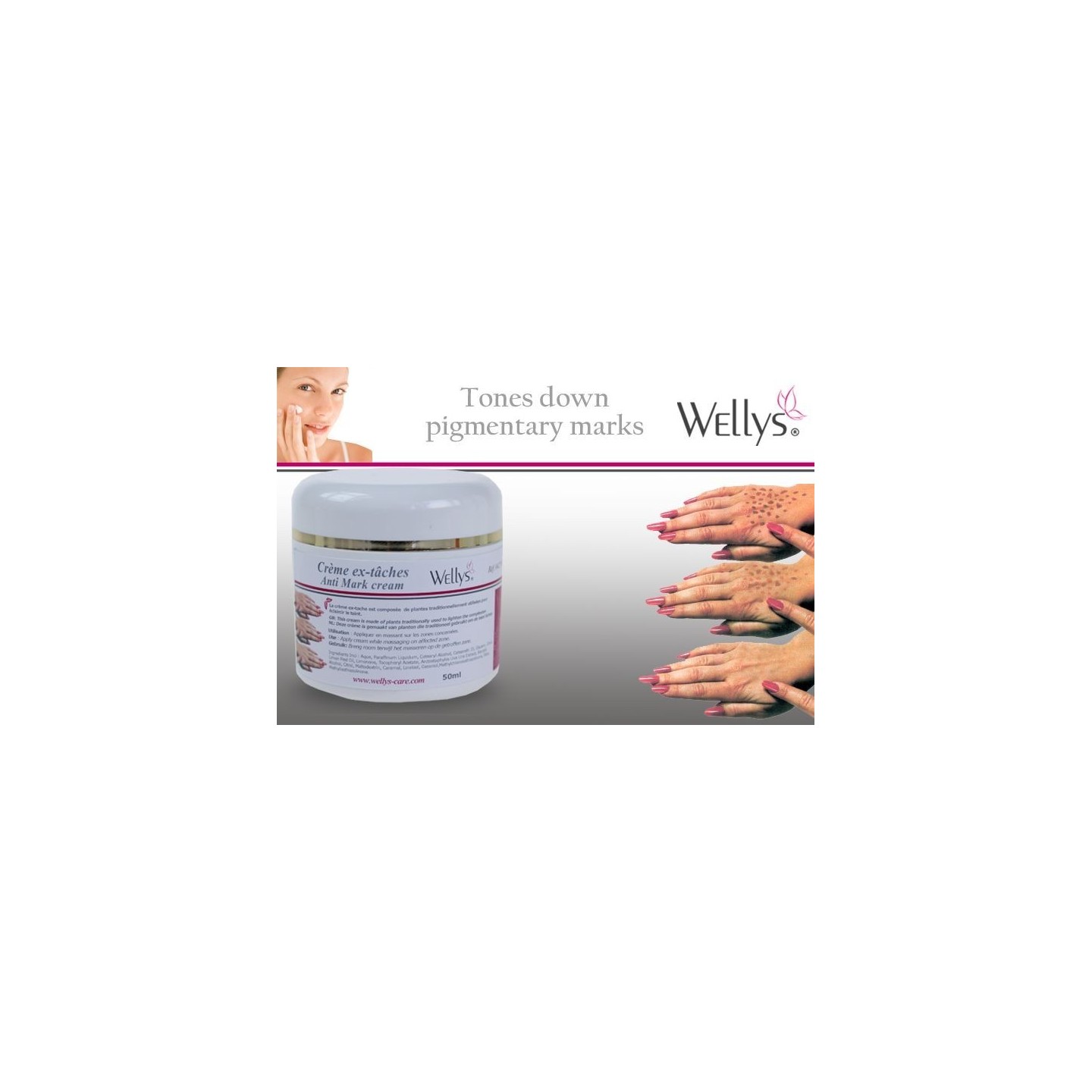 Composée exclusivement de plantes utilisées pour éclaircir le teint et atténuer les taches pigmentaires disgracieuses, la crème ex-taches vous permettra de retrouver un teint lumineux et uniforme.