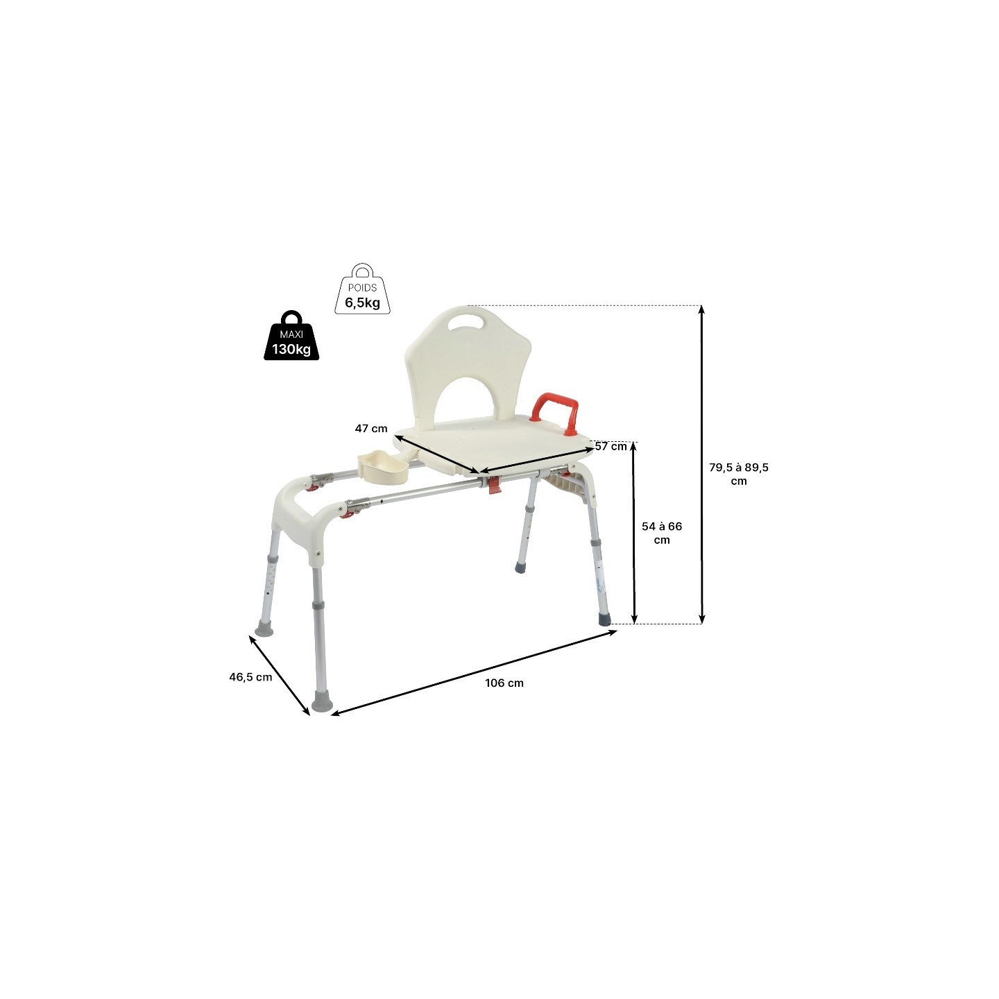 Il permet des transferts faciles par coulissement, en restant confortablement assis.