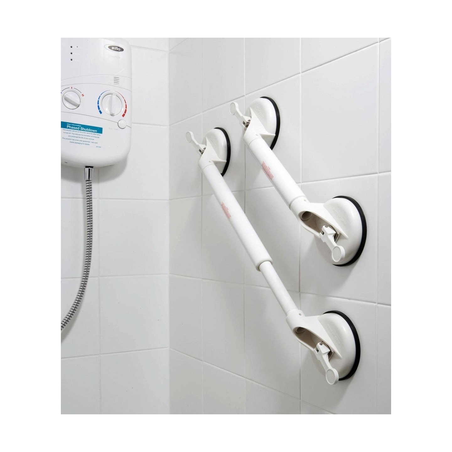 Pressez les deux leviers latéraux et elle tient très fermement sur tous les supports lisses (carrelage, faïence, surface vitrée, peinture laquée, surface PVC des cabines de douches...).