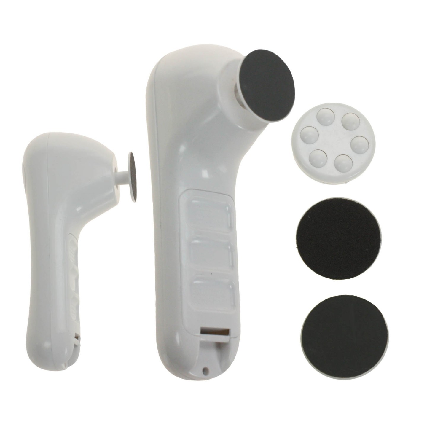 Prenez soin de vos pieds tout en douceur avec cet appareil de pédicure. Il comporte deux disques abrasifs et un disque de massage. Il vous permettra un gommage en douceur, l’élimination de durillons, cors et autres callosités gênantes et disgracieuses. Fonctionne avec 4 piles AA (non fournies).