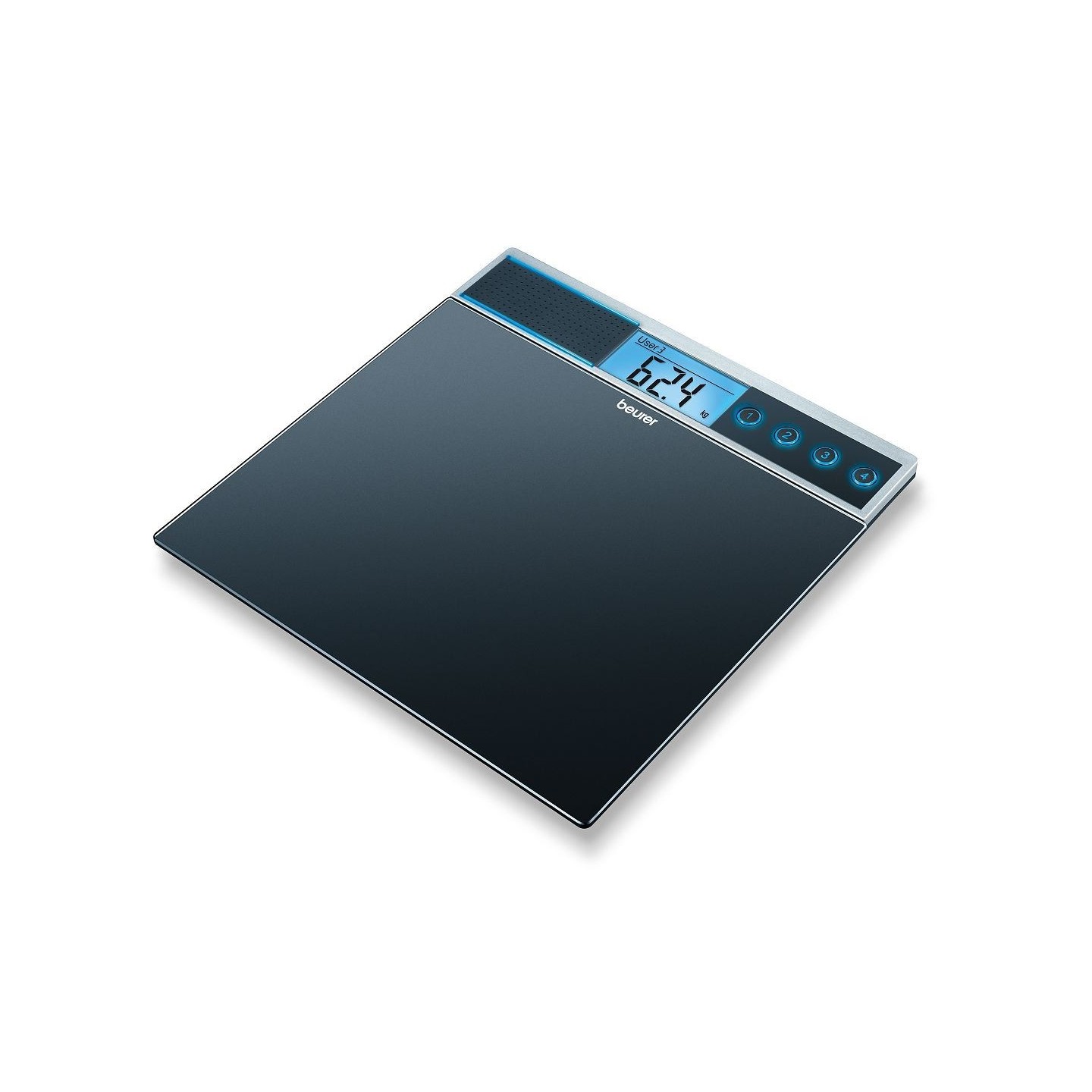 Notre pèse-personne en verre dispose d'une fonction vocale qui vous donne votre poids sans avoir à le lire de haut. Rétro-éclairage bleu très tendance. 4 mémoires directes. Chiffres 33 mm. Mise et marche et arrêt automatique. Parle en 5 langues. Volume sonore réglable. Fonctionne avec 3 piles AAA fournies. Garantie 5 ans. Dimensions : 35 x 34 x 2,3 cm. Portée 150 kg.