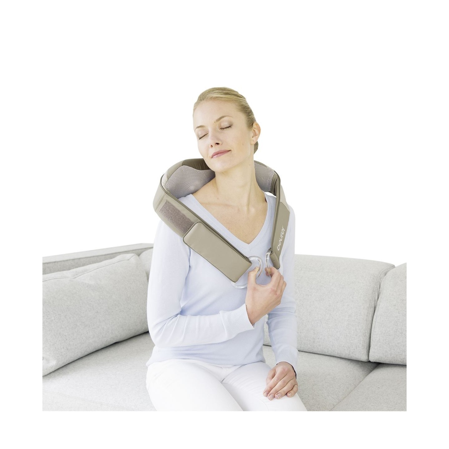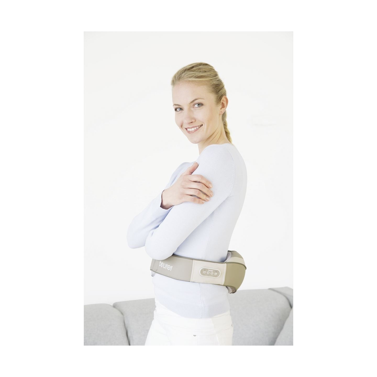Cette ceinture massante Shiatsu s'installe au niveau des épaules ou des lombaires pour un massage détente.
