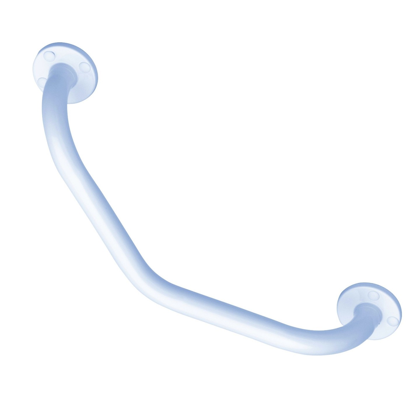 Barre de maintien plus particulièrement préconisée pour les toilettes, ou les transferts assis /debout car sa surface coudée permet des points d'appui différents.