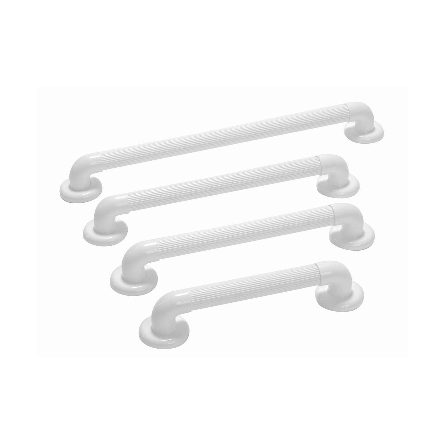 Barre d'appui cannelée. Les stries sur le PVC permettent de mieux s'agripper et de rendre la surface de la barre moins glissante, même sous la douche par exemple.