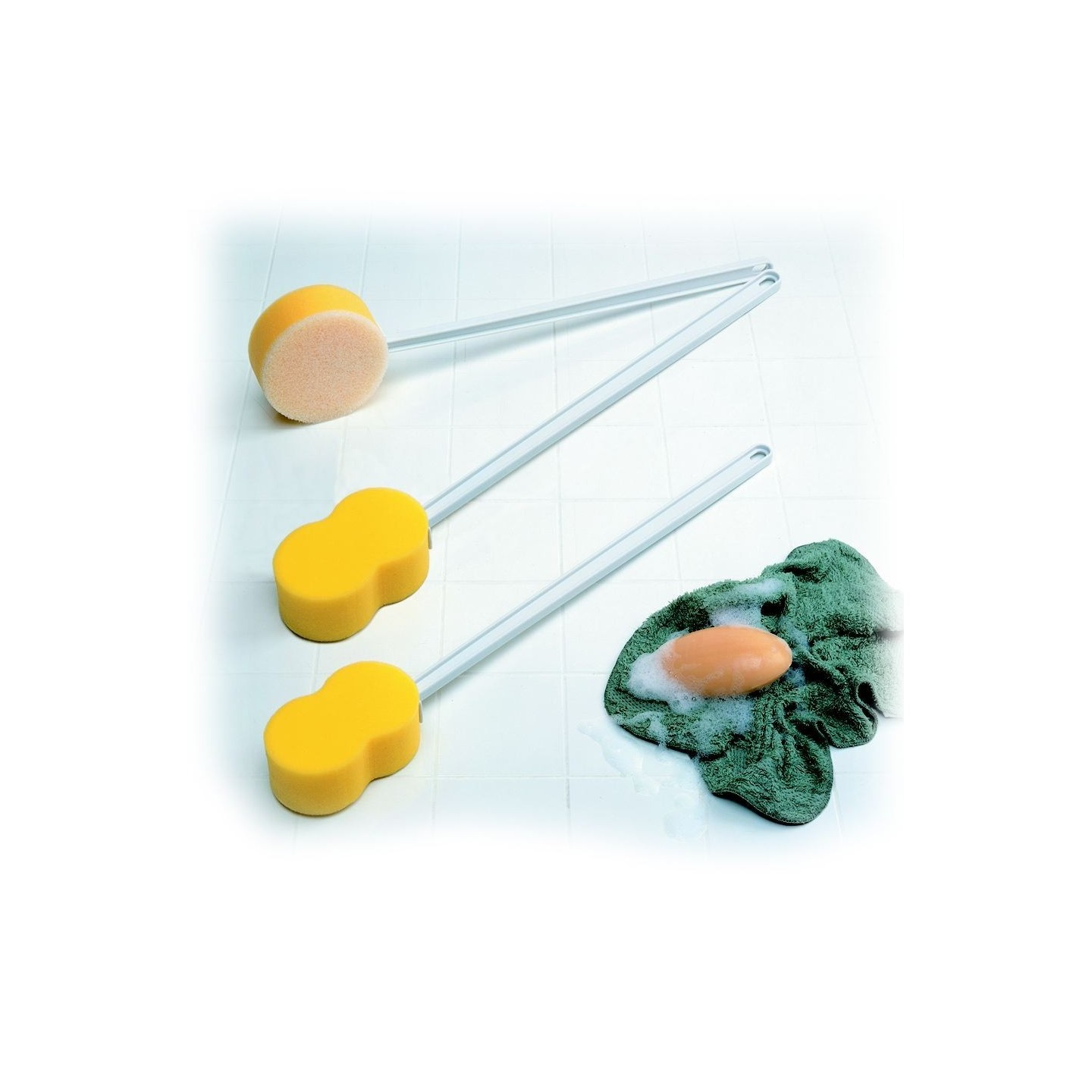 Cette éponge à long manche permet de se laver plus facilement le dos ou le reste du corps sans se tordre ou se baisser.